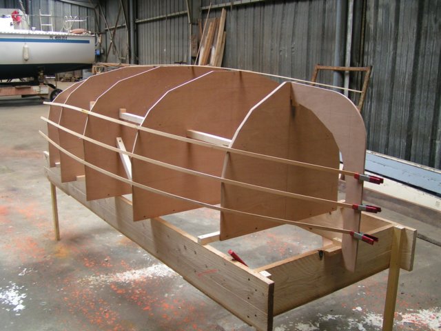 Lissage du mannequin : je n'ai pas fait de vrai plan, mais suis passé directement en "3D" pour visualiser les volumes de la future coque. Après cette photo, j'ai largement "effacé" le brion afin d'améliorer la "docilité" d'Arwen en remorque. | ![]() |