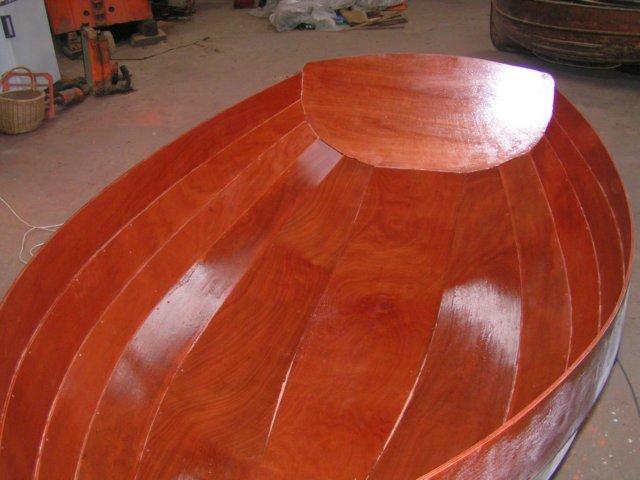 Quand on a assez gratté les coulures de colle et bien poncé l'intérieur, on finit par 2 couches d'imprégnation époxy. La seconde couche est passée avant que la première ait totalement pris afin qu'elles se "soudent" ensemble. | ![]() |