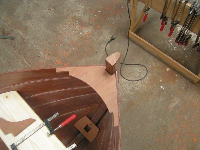 La guirlande est positionnée à sec pour ajustage final. On aperçoit le pied de mat et une courbe du banc avant prêts à être fixés. | ![]() |