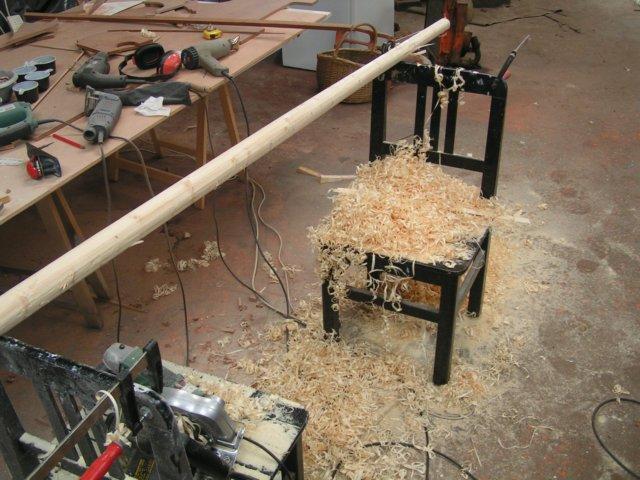 Entre deux, le mât est raboté à partir d'un madrier de 55x55. | ![]() |