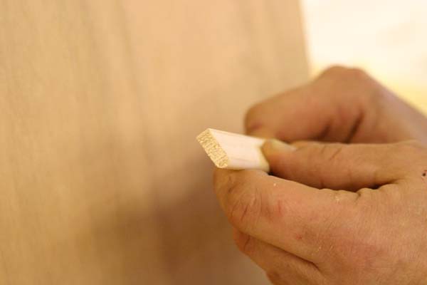 Vue de la section d'une latte fournie dans le kit. On voit l'arrondi de la tranche. | ![]() |