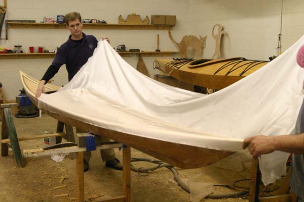 Mise en place du tissu de verre sur le pontage | ![]() |