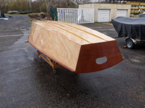 J'ai sorti le GIS de la partie chauffée de l'atelier car je dois maintenant retourner la coque pour ouvrir le puits de dérive et fixer les patins ou fausses-quilles.