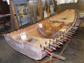 J'ai poursuivi la construction du PassageMaker Dinghy de Philippe, après le collage des sièges, voici le collage des listons. |